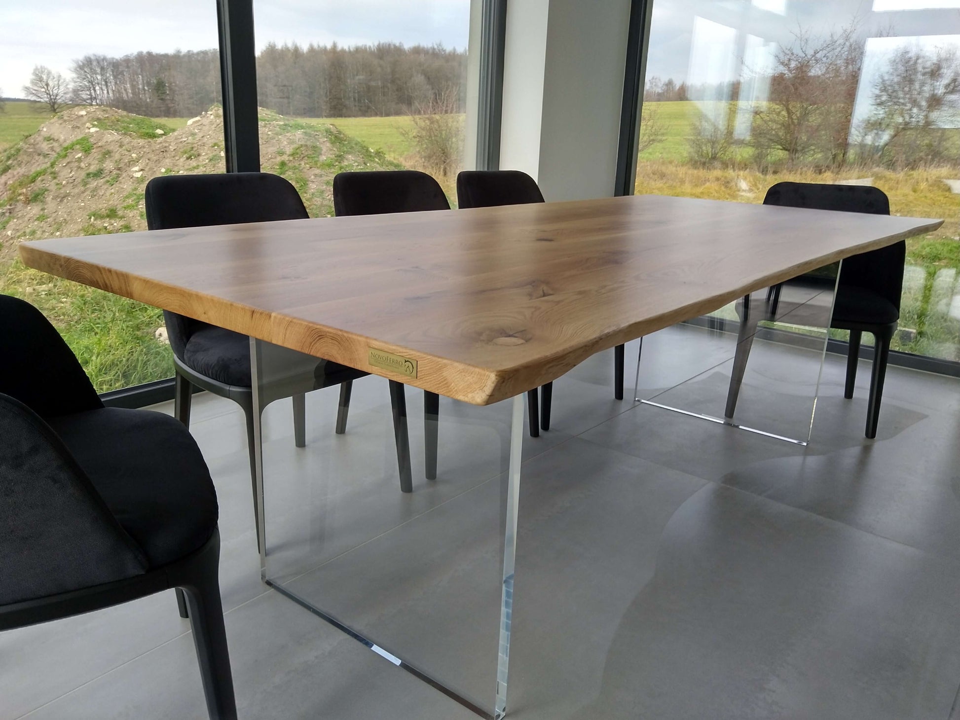 Dia Tischbeine sind aus 3cm dickem Acrylglas hergestellt und die Kante ist rundum poliert.